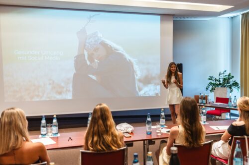 Darüber hinaus stellte sie den Teilnehmerinnen eine Checkliste zur Verfügung, die den Umgang mit Kooperationsanfragen erleichtern soll.Mara Kerschbaumer hingegen berichtete offen von ihren Social-Media-Erfahrungen während ihres Miss-Jahres und gab hilfreiche Tipps zum Umgang mit Hasskommentaren. Zum Abschluss erhielten die Kandidatinnen von den beiden Social-Media-Expertinnen noch die Aufgabe, in kleinen Gruppen Fotos und Videos im Hotel Therme Meran zu machen und diese auf ihren Kanälen zu posten. Die Ergebnisse sind auf den Profilen der Teilnehmerinnen zu sehen.